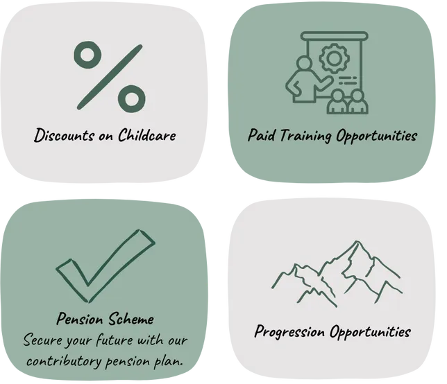 At Priesthills Nurseries, we believe in a team-first, family-feel culture that prioritise the well-being and development of everyone involved — from the children to the staff and the families we support.